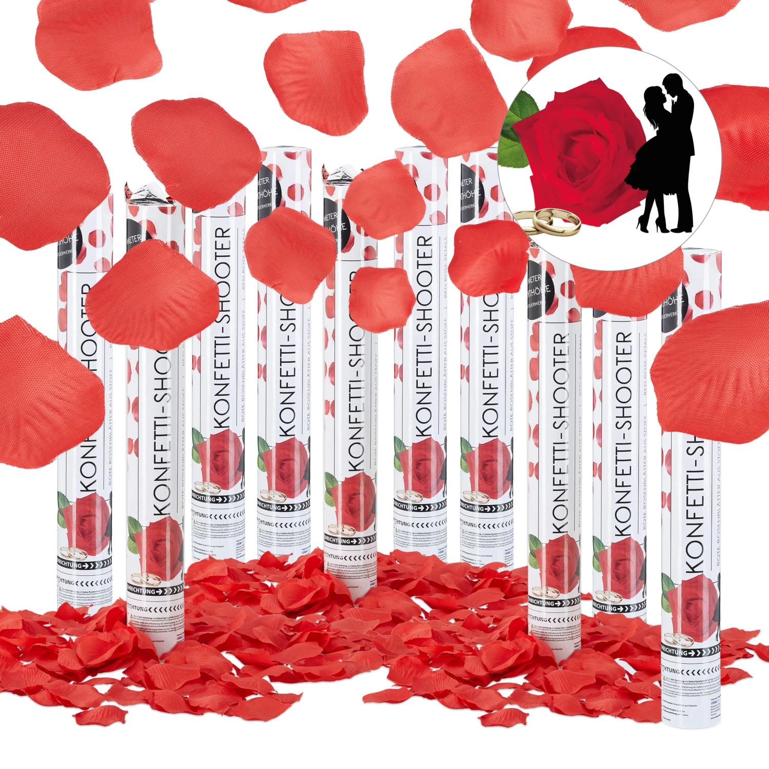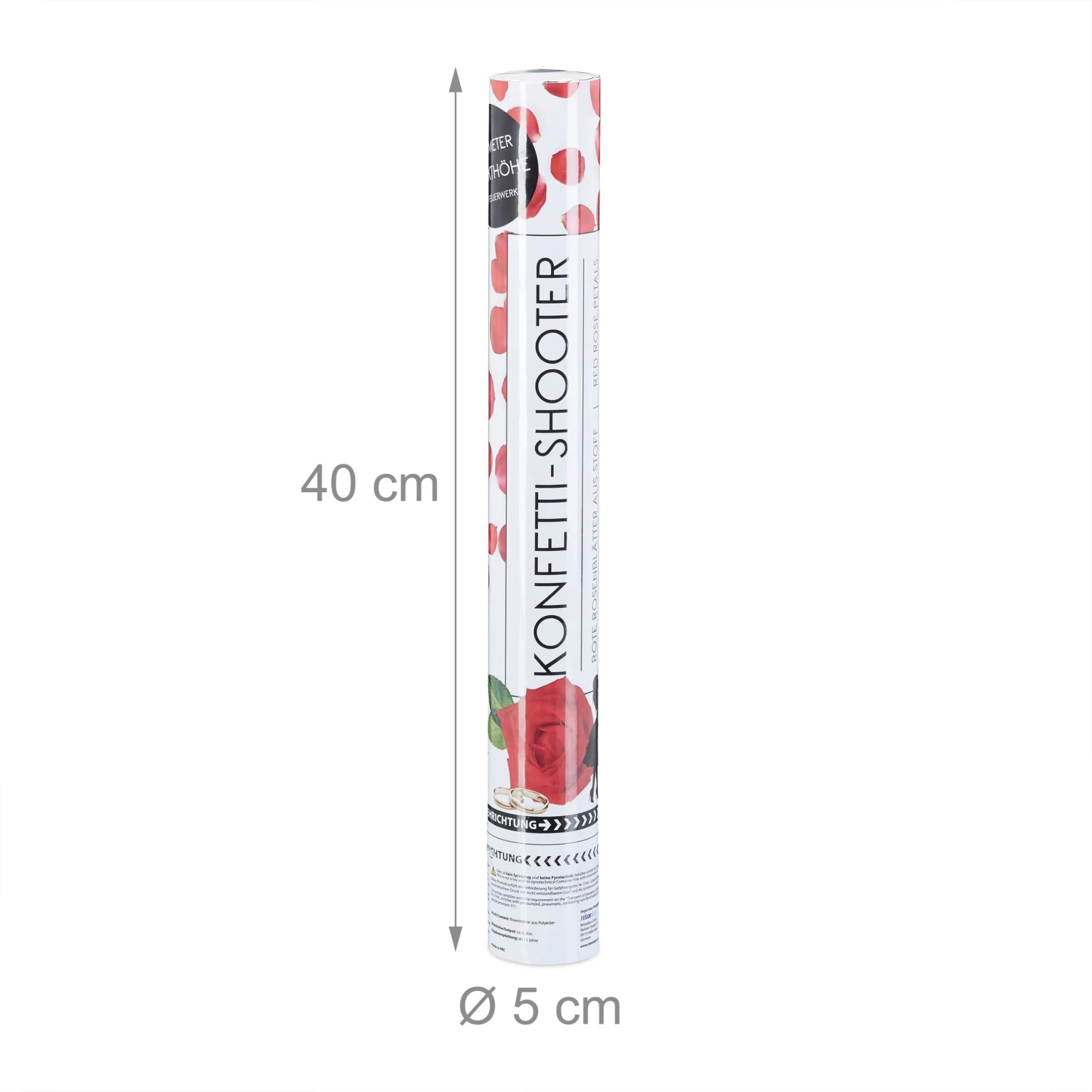Die romantischen Party-Popper sind der Renner auf der nächsten Hochzeit. Denn durch die Party-Popper mit Konfetti in Form von Rosenblättern sorgen Sie im Handumdrehen für die richtige Liebesstimmung. Insbesondere auf Hochzeiten oder Verlobungen ein schönes Deko-Accessoire für Verliebte. Im Gegensatz zu normalen Konfetti-Kanonen erzeugen diese Shooter einen wunderbaren Rosenregen.