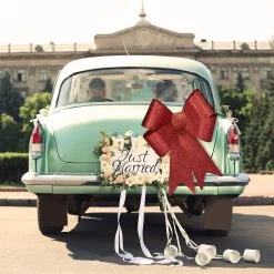 Die große Glitzerschleife ist ein knalliger Schmuck und kann für verschiedene Anlässe genutzt werden. Machen Sie ihren Liebsten eine Freude und verschönern das Geschenk mit der hübschen Schmuckschleife. Soll es etwas größeres sein, können Sie die XXL Schleife an einem Band auffädeln und so beispielsweise auf der Frontscheibe eines Autos oder an einem Fahrrad befestigen. Aber auch an Stühlen und Tischen lässt sie sich so befestigen und kann die nächste Hochzeitsdeko bereichern. An Weihnachten dagegen zaubern Sie mit der opulenten Dekoschleife ein besinnliches Ambiente.