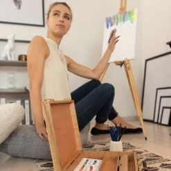 Der exquisite Malkoffer aus Holz beinhaltet sämtlichen Malbedarf, der das Herz von Hobbymalern und Anfängern höherschlagen lässt. Schnappen Sie sich das umfangreiche Set und legen Sie los. Stellen Sie mit der beweglichen Modellpuppe eine menschliche Pose nach und mischen Sie auf der Malerpalette die hochwertigen Farben. Die Staffelei eignet sich perfekt für den Tisch und hält die Leinwand auf dem Keilrahmen im richtigen Winkel. Egal ob zu Hause oder unterwegs, mit dem kompakten Koffer toben Sie sich künstlerisch überall aus.