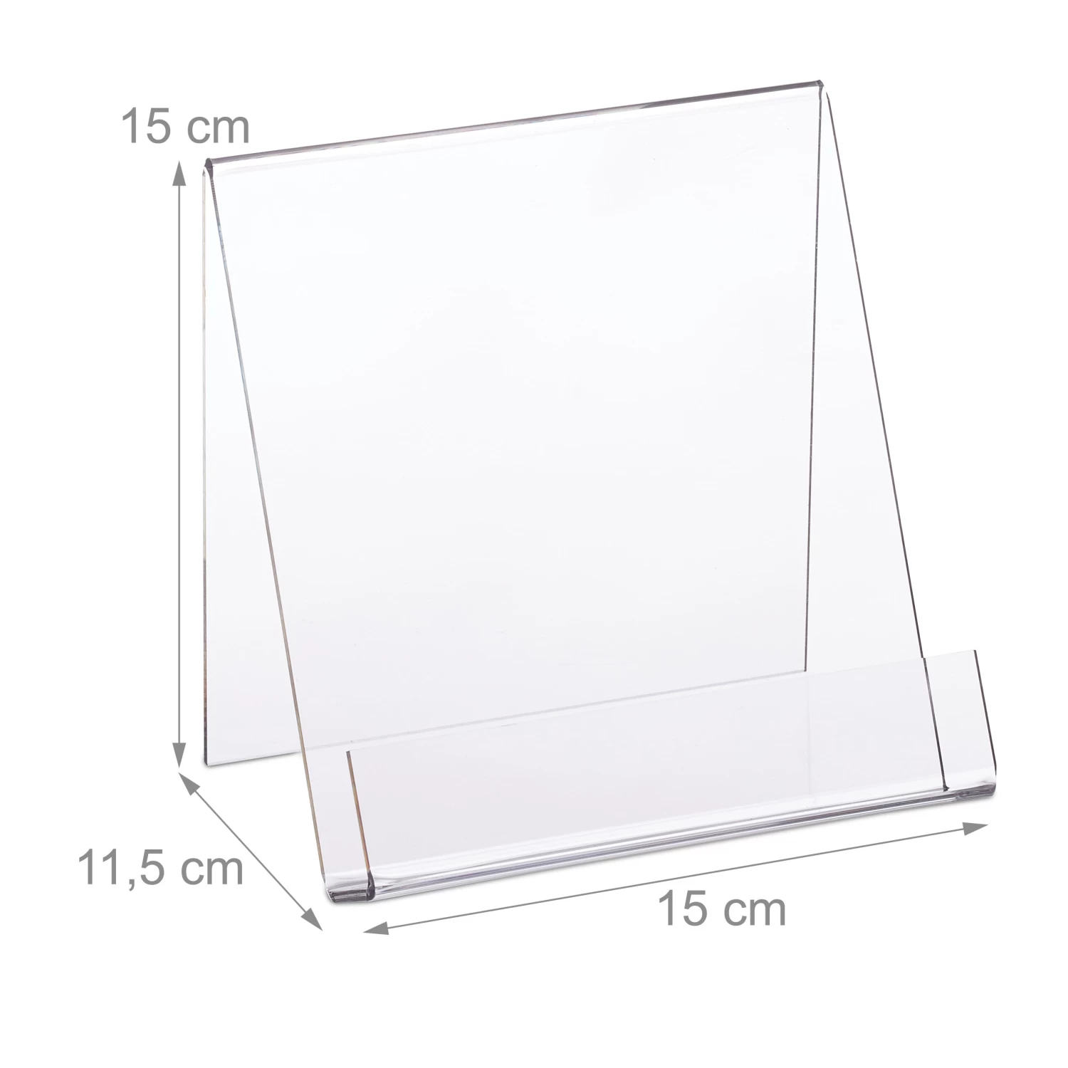 Ob als praktischer Leseständer oder dekorativer Aufsteller, der durchsichtige Buchhalter aus Acryl bereichert Ihr Heim und Büro. Auf dem Schreibtisch ist das Lesepult ein Halter für Schulbücher und -hefte. In der Vitrine wertet der Warenträger die Präsentation Ihrer Lieblingsstücke auf, wie Bilder oder Schallplatten.