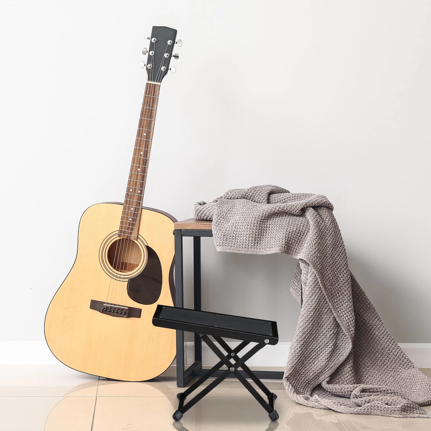 Dieser Fußständer ist das perfekte Zubehör für Spieler klassischer Konzertgitarren, eignet sich aber auch für E-Gitarren-Spieler. Der Gitarrenfußhocker ermöglicht eine ergonomische Hand- und Körperhaltung während des Spielens, sodass Sie Grifftechniken optimal einsetzen können. Dank der stabilen Metallkonstruktion und der Gummiauflage ist ein sicherer Halt garantiert. Der Gitarrenfuß verfügt über 4 Höheneinstellungen, sodass er sowohl von Erwachsenen als auch von Kindern genutzt werden kann.