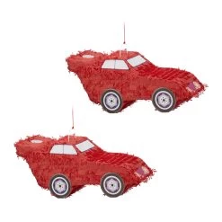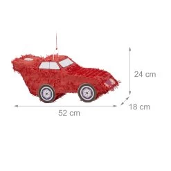 Mit diesen Auto Pinatas sorgen Sie im Handumdrehen für gute Stimmung auf dem nächsten Kindergeburtstag. Das rote Rennauto kann mit Süßigkeiten, Spielzeug, kleinen Geschenken oder Konfetti befüllt werden. Die Kinder schlagen dann abwechselnd mit verbundenen Augen mit einem Stock auf die Pinata ein, bis sie aufplatzt und die Überraschungen herausfallen. Je höher die Pinata gehangen wird, umso größer ist der Schwierigkeitsgrad.