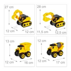 Hinweis: Die Baufahrzeuge sind aufgrund verschluckbarer Kleinteile nicht für Kinder unter 3 Jahren geeignet.