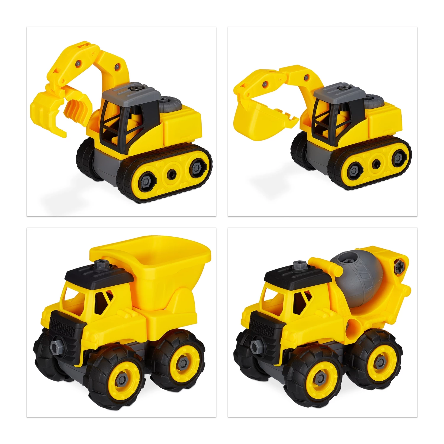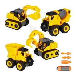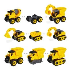 Bringen sie die Augen Ihrer kleinen Bauarbeiter mit diesen Baustellenfahrzeugen zum Leuchten. Mit Minibagger, Greifbagger, Betonmischer und Kipplaster können Ihre Kleinen der Fantasie freien Lauf lassen. Die Spielfahrzeuge im 4er Set können mit dem beiliegenden Schraubendreher inklusive 3 Aufsätzen beliebig auseinander oder zusammengebaut sowie neu zusammengestellt werden. Somit haben Ihre Kinder nicht nur viel Spaß sondern lernen spielerisch Kreativität und motorische Fähigkeiten zu entwickeln.