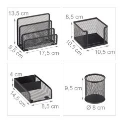 • Set aus Briefablage, Zettelbox, Klammernspender und Stiftehalter