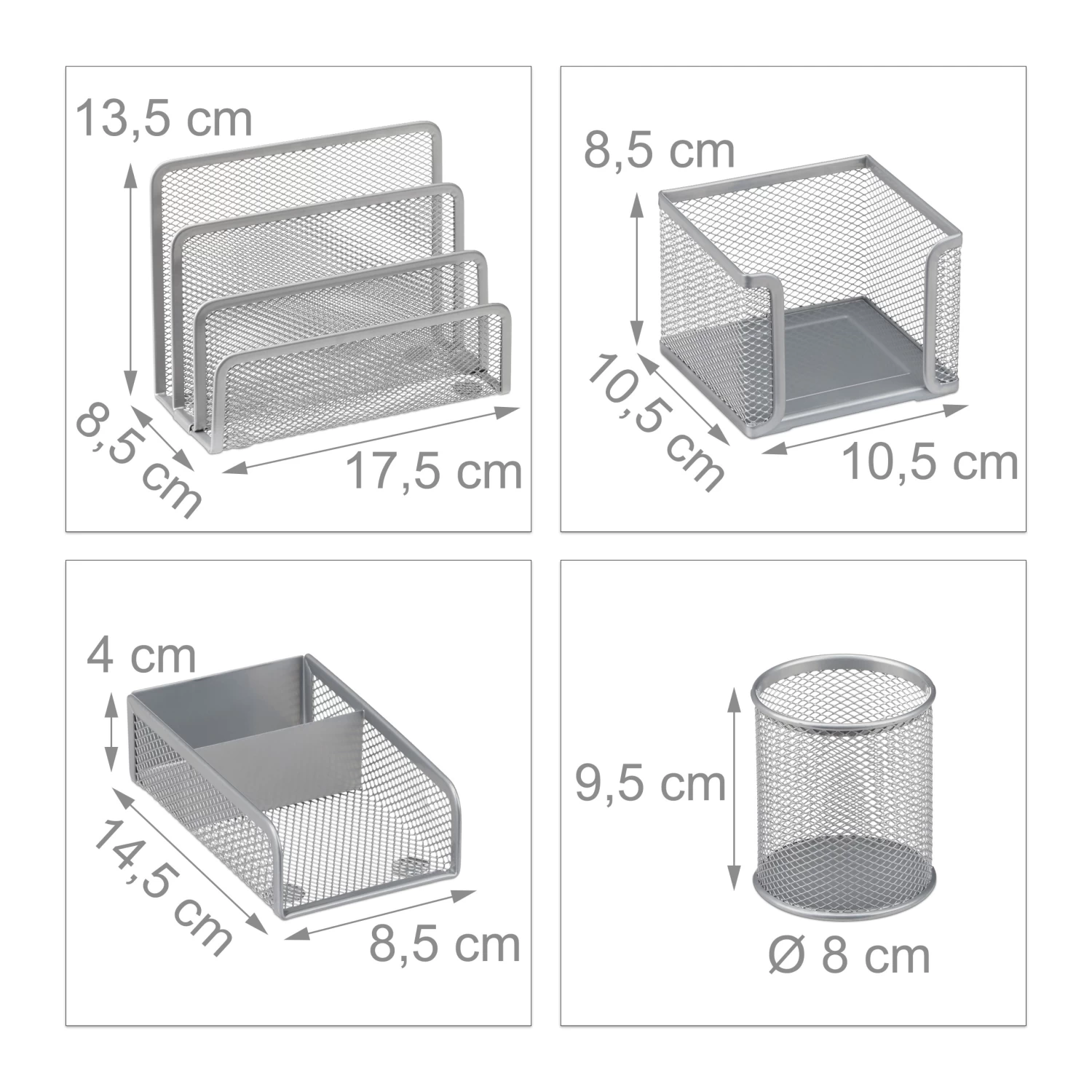 • Set aus Briefablage, Zettelbox, Klammernspender und Stiftehalter