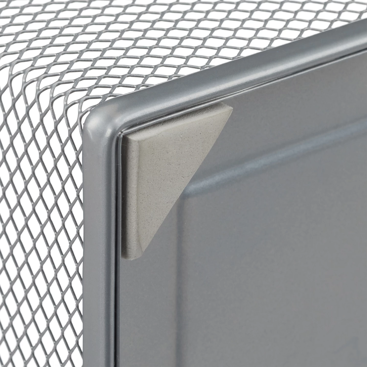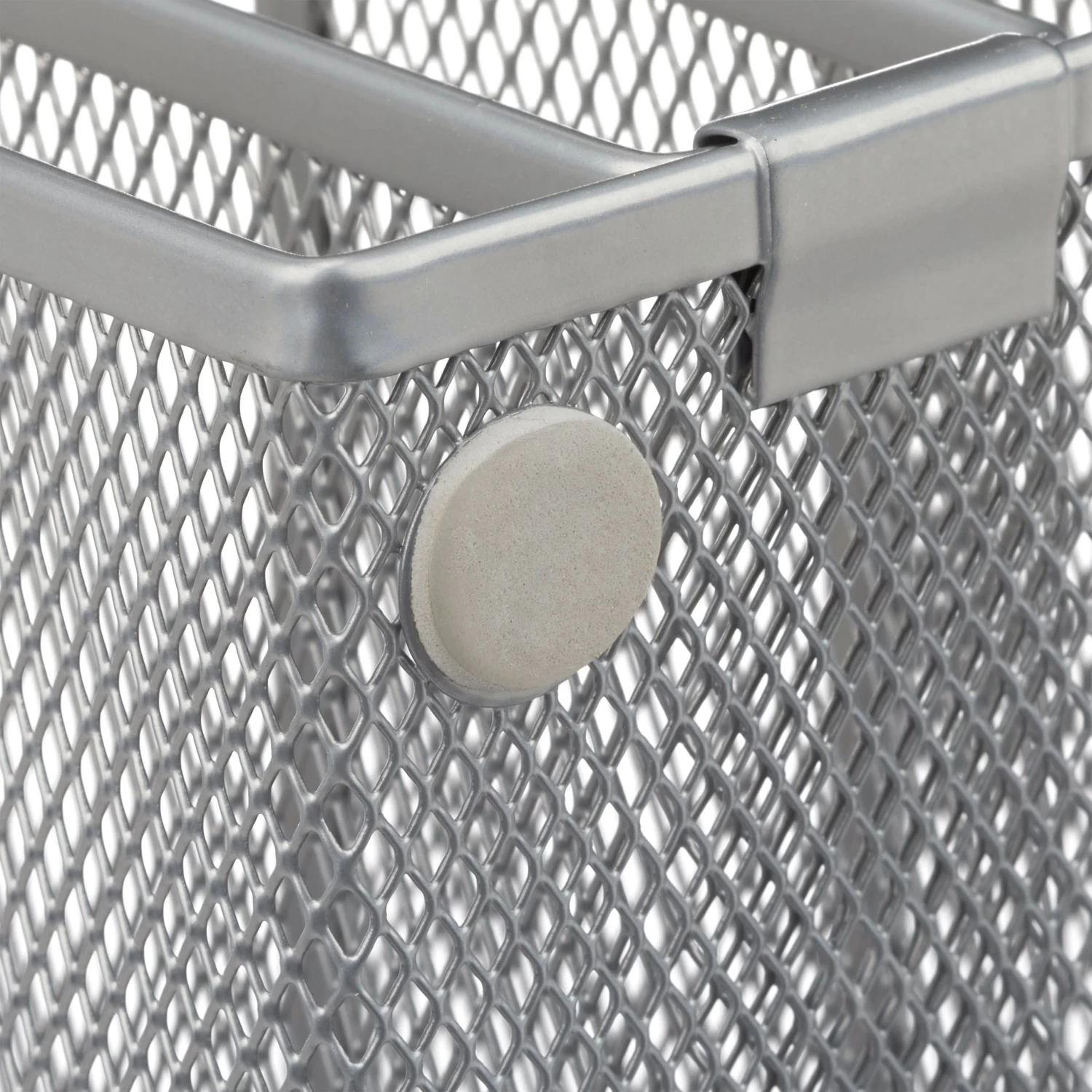 Das vierteilige Schreibtisch Organizer Set ergänzt sinnvoll jeden Bürotisch. Verstauen Sie Bleistifte, Radiergummi, Büroklammern und Haftnotizen platzsparend und übersichtlich in diesen Schreibtischutensilien. Das Ensemble besteht aus Briefablage, Notizblockhalter, Stifteköcher und Klammernspender. Nutzen Sie das Bürozubehör einzeln oder als Set je nach Bedarf. Die vier Büroaccessoires aus einem dünnen Metallgeflecht sind in Schwarz und Silber erhältlich. Die dezenten Farben passen in jedes Arbeitzimmer.