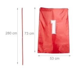 Das Sackhüpfset enthält alles, was man für ein gelungenes Spiel benötigt: 4 Hüpfsäcke in verschiedenen Farben, die von 1 bis 4 nummeriert sind, 2 rote Leinen zur Markierung von Start und Ziel und 4 Heringe zum Befestigen der Leinen im Boden.