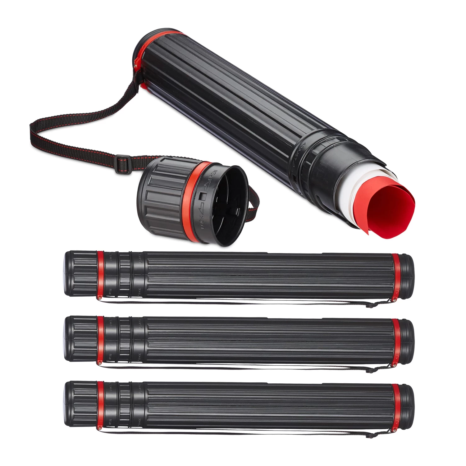 Sie haben Plakate, Poster, Zeichnungen oder Entwürfe, die nur darauf warten, interessierte Blick zu ernten, doch der Transport bereitet Ihnen Kopfzerbrechen? Mithilfe der Posterrolle bringen Sie große Papierbögen sicher an den gewünschten Ort, ohne sie zerknittern oder falten zu müssen. Um den Posterköcher zu verlängern, arretieren Sie einfach das enthaltene Rohr wie gewünscht – festdrehen und fertig! Dank des verstellbaren Gurts lässt sich die Zeichenrolle entspannt überallhin mitnehmen.