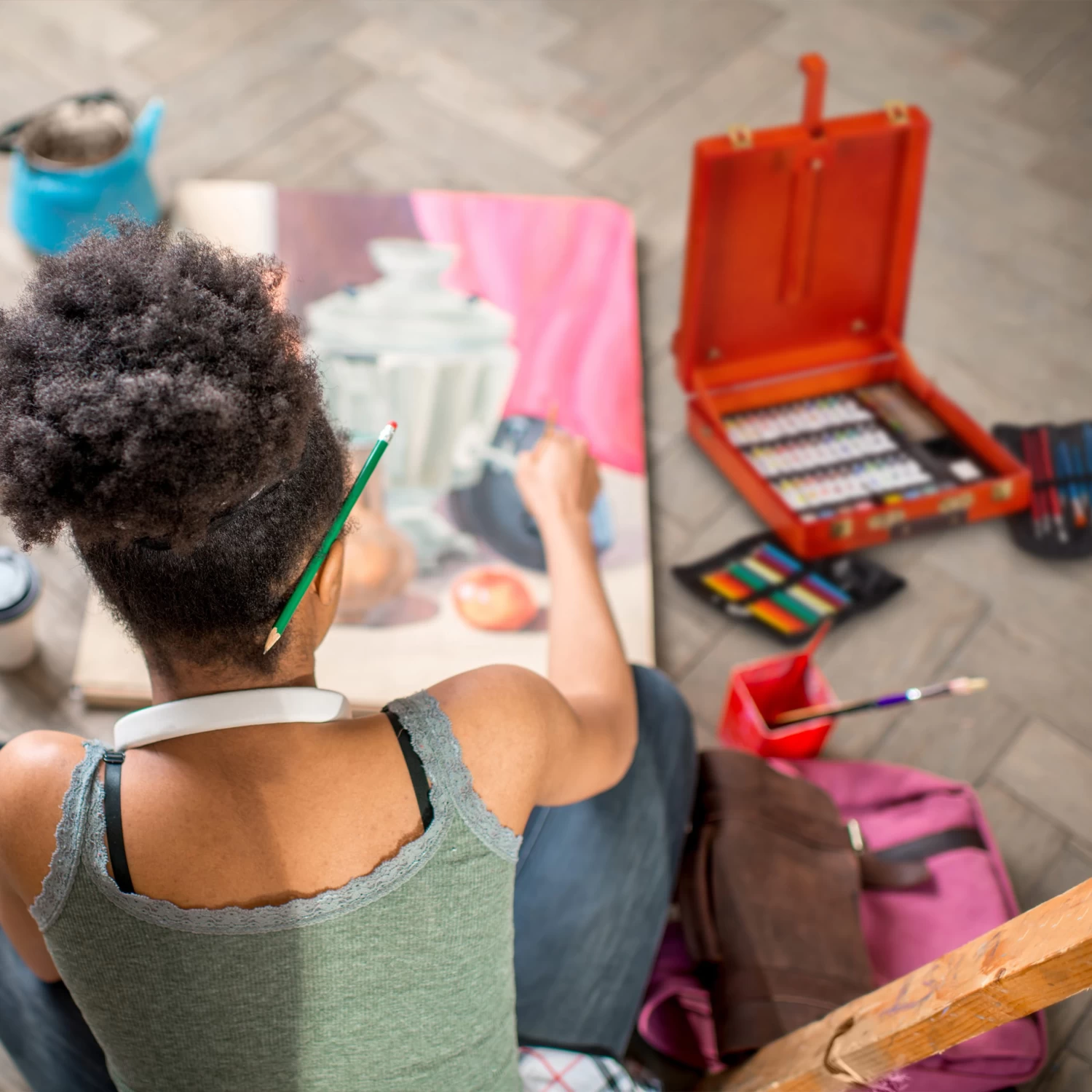 – Große Auswahl an Farben, Pinseln und Zubehör