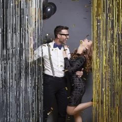 Sorgen Sie für glamouröse Atmosphäre mit diesen schimmernden Partyvorhängen! Die glitzernden Folienvorhänge im 8er Set werden über das doppelseitige Klebeband auf der Rückseite am Türrahmen oder der Wand befestigt und sorgen sofort für einen tollen Hingucker. Bei Bedarf können die Vorhänge einfach mit einer Schere in Länge und Breite gekürzt werden.