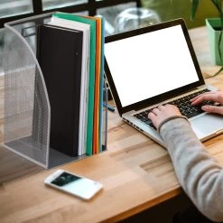 Der extra breite Sammelordner aus Metall hilft Ihnen, Ordnung am Arbeitsplatz zu halten und dem Papierchaos den Kampf anzusagen. Dokumente, Zeitschriften, Blöcke oder Hefte im A4-Format können sie im Aktensammler übersichtlich aufbewahren. An der Rückwand des Aktenhalters befindet sich ein kleines Steckfach für Beschriftungen, um auch bei mehreren Standsammlern auf dem Schreibtisch nicht den Überblick zu verlieren. Das moderne Mesh-Design der Stehablage fügt sich in jedes Büro optimal ein.