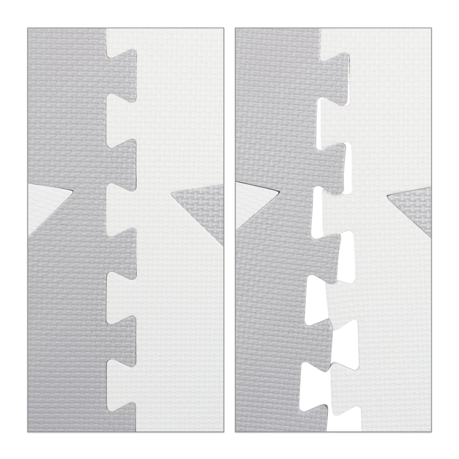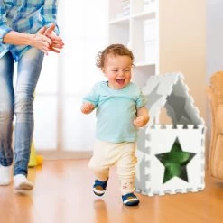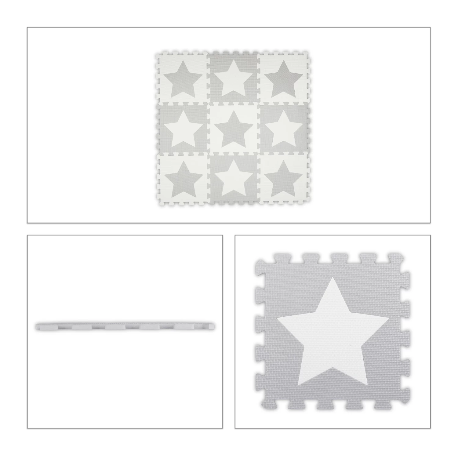 Spielspaß für die Kleinen garantiert der weiche Kinderspielteppich mit Stern-Motiv zum Puzzeln. Die flexibel zusammensetzbare Spielunterlage besteht aus 9 EVA-Schaumstoffmatten. Die bequeme Krabbelmatte ist eine stoßdämpfende Unterlage für Babys und Kinder. Die zweifarbigen Matten sind pflegeleicht und unbedenklich. Die herausnehmbaren Sterne bieten besonders Kleinkindern ein haptisches Erlebnis. Säuglingen bietet die Babymatte einen griffigen Untergrund für erste Krabbelversuche.