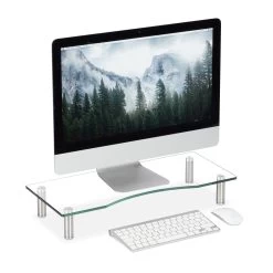 Lange im Sitzen zu arbeiten und dabei dauerhaft nach unten schauen zu müssen, ist kein Vergnügen für Rücken und Nacken. Mithilfe des Bildschirmständers können Sie eine schonendere und damit produktivere Sitzhaltung einnehmen. Die herausdrehbaren Beine erlauben es Ihnen, die Höhe an Ihre Bedürfnisse anzupassen. Sind Sie mit Ihrer Arbeit fertig, können Sie die Tastatur einfach unter die stabile Platte aus gehärtetem Glas schieben und auf diese Weise Platz auf dem Schreibtisch sparen.