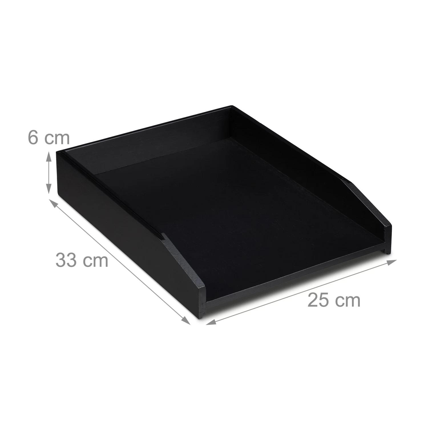 In der praktischen Ablagebox können Sie wichtige Briefe, Rechnungen und Notizen platzsparend übereinander stapeln. So gehen keine Unterlagen verloren und alles ist stets an einem Platz verstaut. Die Postablage eignet sich für Papier im DIN A4 Format. Gefertigt aus natürlichem Bambus passt der schwarze, flache Briefkorb auf jeden Schreibtisch. Bringen Sie, egal ob Zuhause oder im Büro, mit der schönen Aktenablage Ordnung in Ihre Unterlagen.