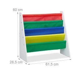 Für kleine Leseratten und Buchliebhaber ist dieses hübsche Bücherregal genau das Richtige. 4 geräumige Hängefächer aus buntem Stoff bieten nicht nur einen schönen Kontrast zu den weißen Seitenteilen, sondern schenken auch Büchern in allen Formen und Größen ausreichend Platz. Dank der kindgerechten Höhe kann Ihr kleiner Bücherwurm jederzeit selbstständig Bücher entnehmen und wieder einwerfen. Jedes Buch hat so seinen eigenen Platz und Ihr Kind seine Lieblingsbücher immer im Blick.