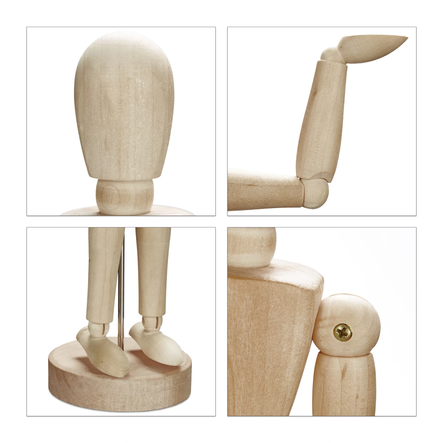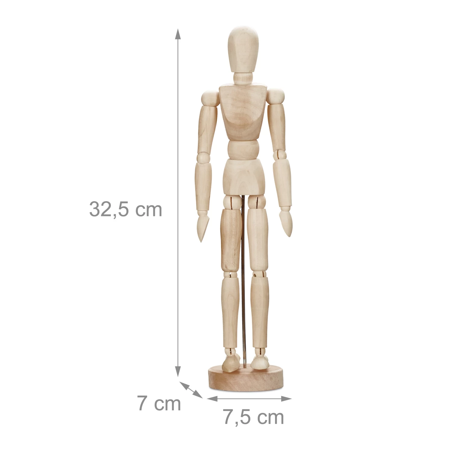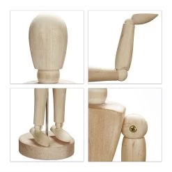 Die Gliederpuppe aus Holz eignet sich ideal für den Künstlerbedarf. Menschliche Posen können mit der proportionsgetreuen Holzpuppe nachgestellt werden, sodass präzise Zeichnungen angefertigt werden können. Die beweglichen Gliedmaßen verharren in der gewünschten Position.
