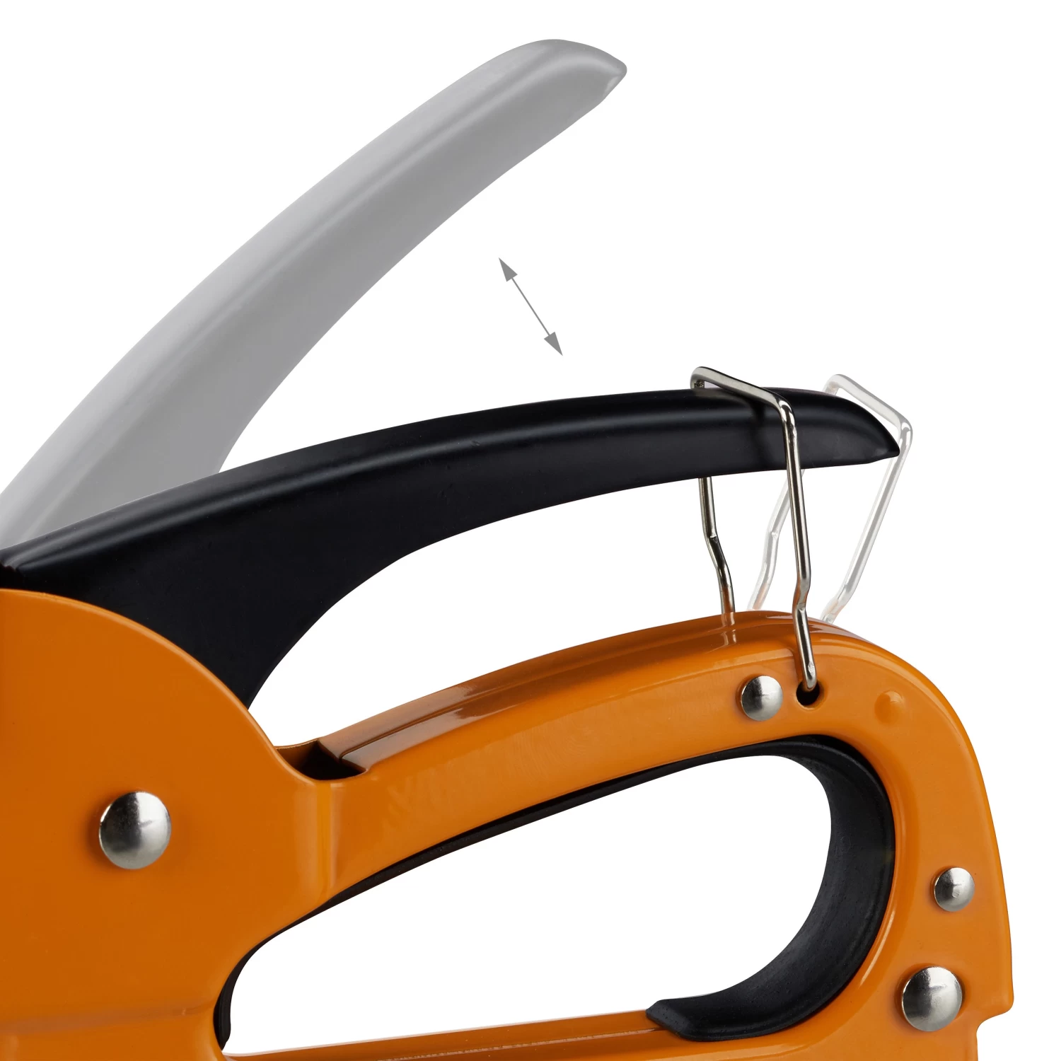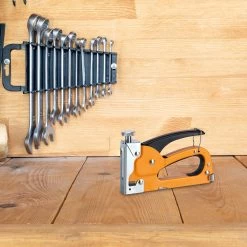 Es ist immer gut, einen Handtacker im Haushalt zu haben. Kleinere Arbeiten stehen immer wieder an, die mit dem Klammergerät leicht von der Hand gehen. Fixieren Sie die Polster von Möbeln, tackern Sie Blätter zusammen oder basteln Sie nie gesehene Objekte. Dank der 500 Klammern können Sie sofort loslegen: Einfach das Schnellwechsel-Magazin herausnehmen und bestücken. Die optimale Schussstärke stellen Sie mit dem Drehrad ein. Verriegeln Sie den Hebel, um Verletzungen zu verhindern und ein platzsparendes Verstauen zu ermöglichen.