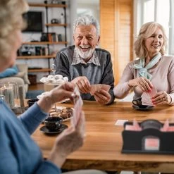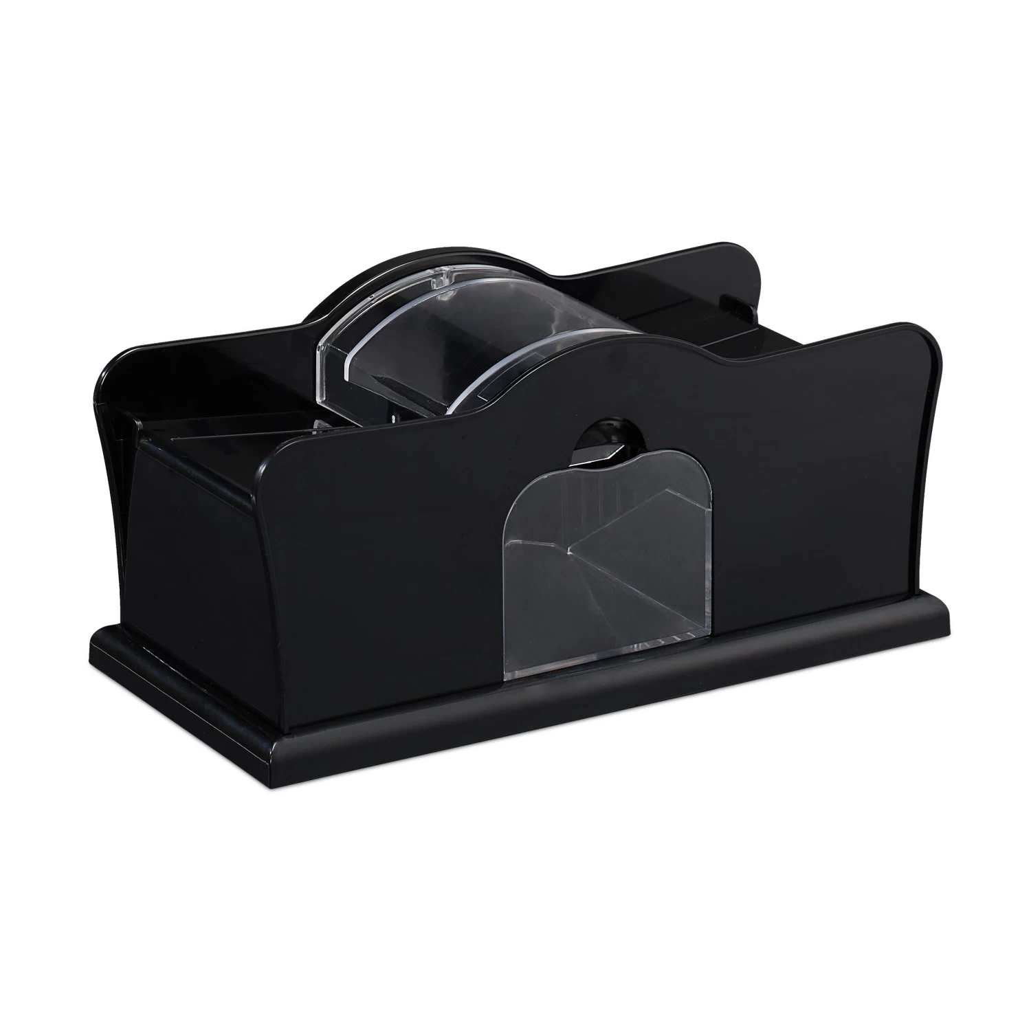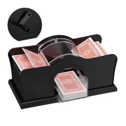Kartenmischen leicht gemacht! Mit dieser manuellen Mischelmaschine gelingt das Mischen beim nächsten Spieleabend im Handumdrehen. Dazu legen Sie die Kartendecks einfach in die Eingabefächer und betätigen die Kurbel – die Spielkarten landen perfekt durchgemischt im Ausgabefach. Schummeln ist damit in Zukunft nicht mehr möglich und das zeitaufwendige Mischen der Karten per Hand gehört der Vergangenheit an. Der Spielkartenmischer eignet sich für handelsübliche Spielkarten für Poker, Rommé und mehr.