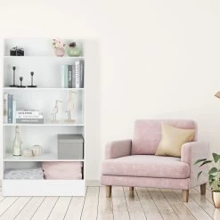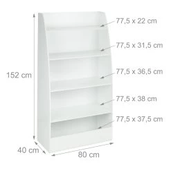 Dieses moderne Bücherregal ist ein echtes Allround Talent. Mit seinem schlichten Design in Weiß fügt es sich in jeden Wohnbereich und kann vielseitig kombiniert werden. Dabei überzeugt das Standregal dank abgerundeten Ecken besonders im Kinderzimmer. Verstauen Sie Bücher, Spielzeug, Kuscheltiere und mehr in den 5 Ablagefächern. Für optimale Stabilität wird das vielseitige Regal an der Wand montiert. Damit macht es ebenso als Dekoregal im Flur oder als DVD-Regal im Wohnzimmer eine gute Figur.