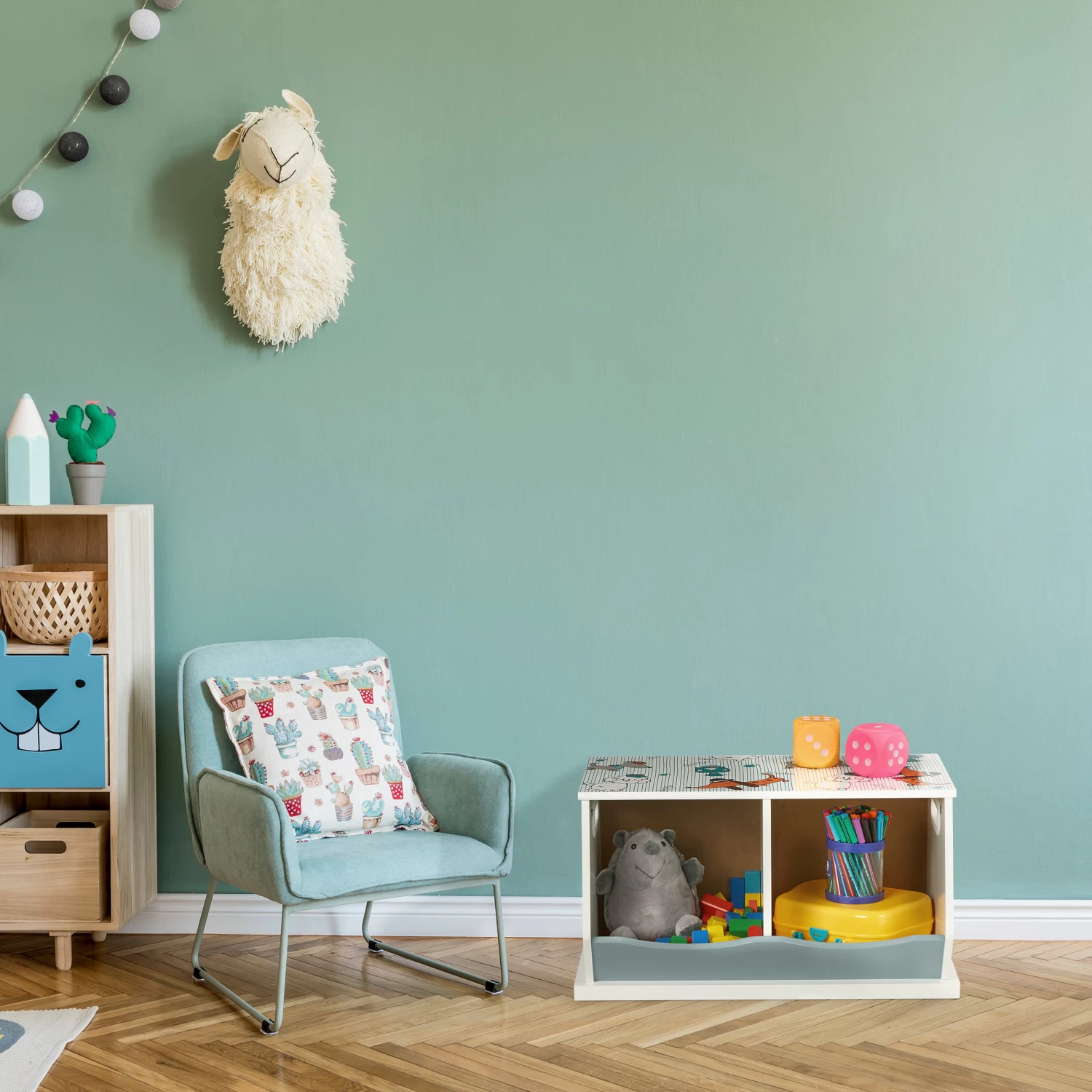 Mädchen als auch Jungen. Die Spielzeugablage bietet mit ihren 2 Fächern viel