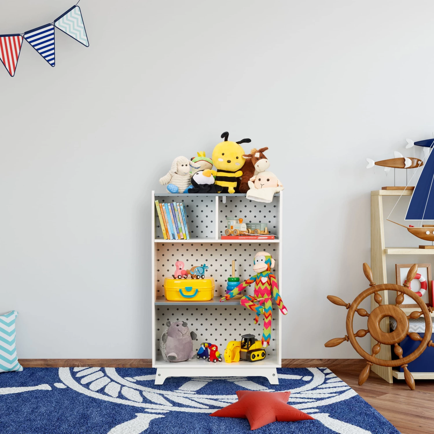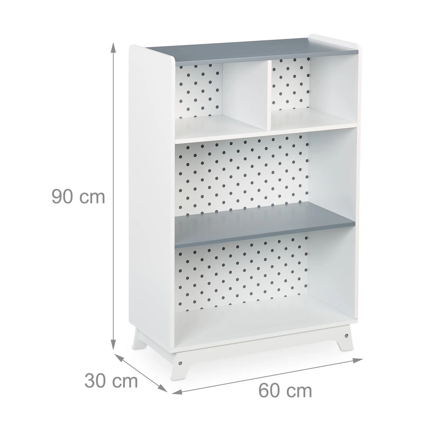 Mit diesem Spielsachenregal machst Du Deinen Kindern eine Freude und sorgst gleichzeitig für Ordnung in der Spielecke. 4 offene Fächer bieten ausreichend Stauraum für Spielzeuge aller Art, Bücher und mehr. Auf der oberen Ablage der Kinderkommode finden Kuscheltiere ihren Platz. Dank der niedrigen Höhe können bereits Kleinkinder das Spielsachenregal selbstständig aus- und einräumen. Der moderne Kinderzimmerschrank ist für Mädchen und Jungen geeignet und mit wenigen Handgriffen aufgebaut.