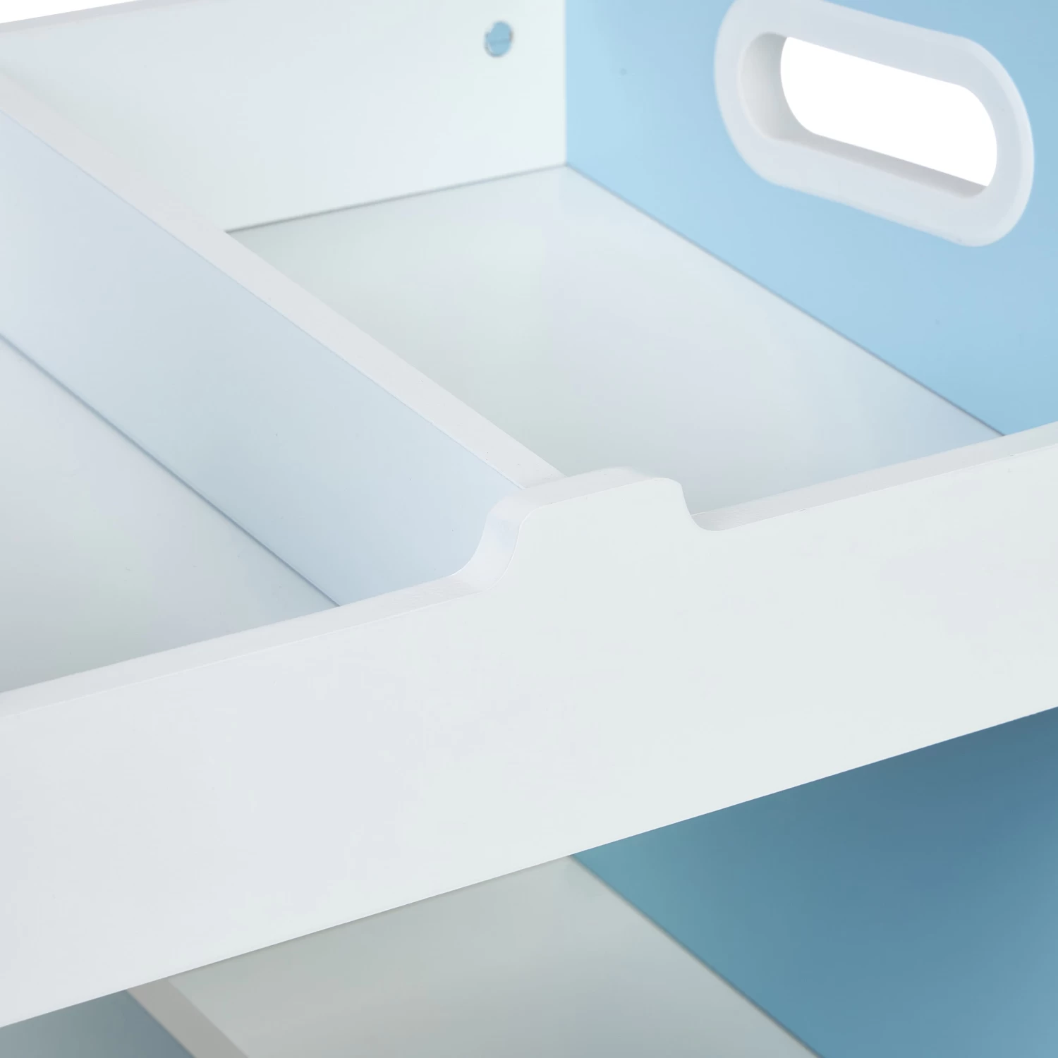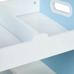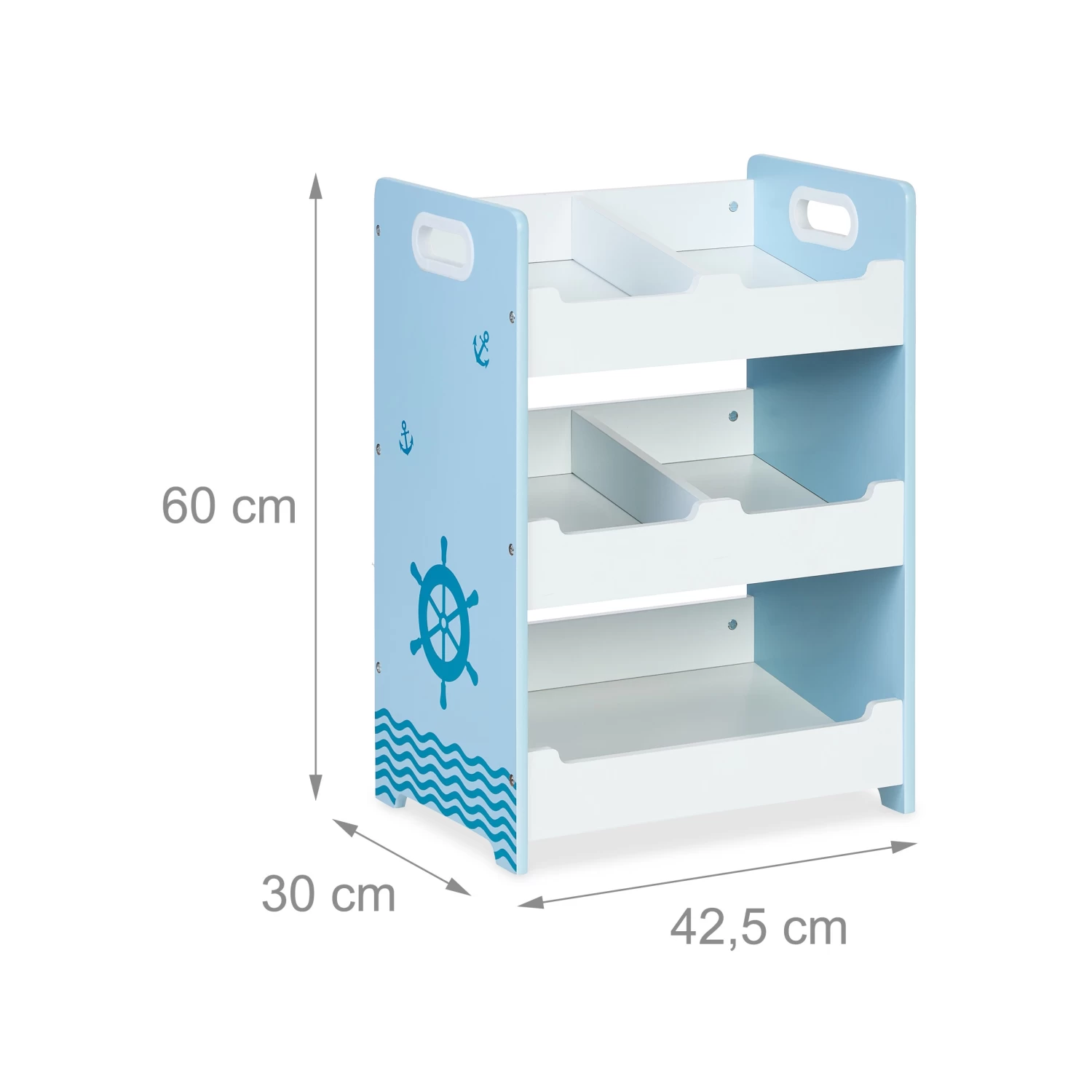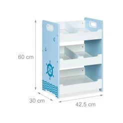 Das Spielregal eignet sich ideal zur Spielzeugaufbewahrung im Kinderzimmer. In 5 Fächern steht ausreichend Platz zur Verfügung, um Kuscheltiere, Bücher und Spielsachen ordentlich zu verstauen. Dank der kindgerechten Höhe können bereits Kleinkinder das stabile Spielsachenregal selbstständig aus- und einräumen. Das maritime Design mit Ankern und Steuerrad begeistert sowohl Mädchen als auch Jungen und macht das Spielzeugaufbewahrungsregal zu einem schönen Blickfang im Kinderzimmer.