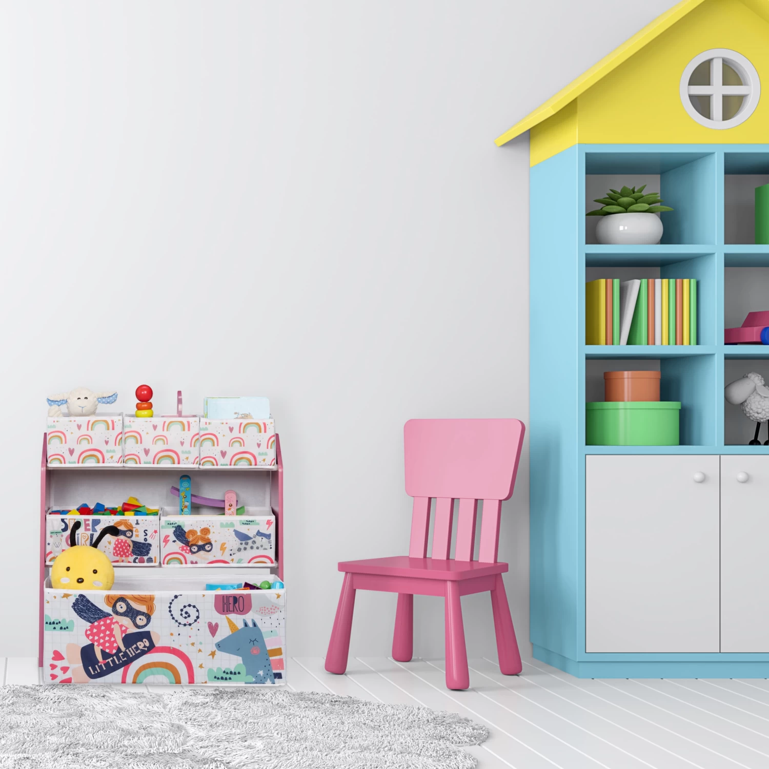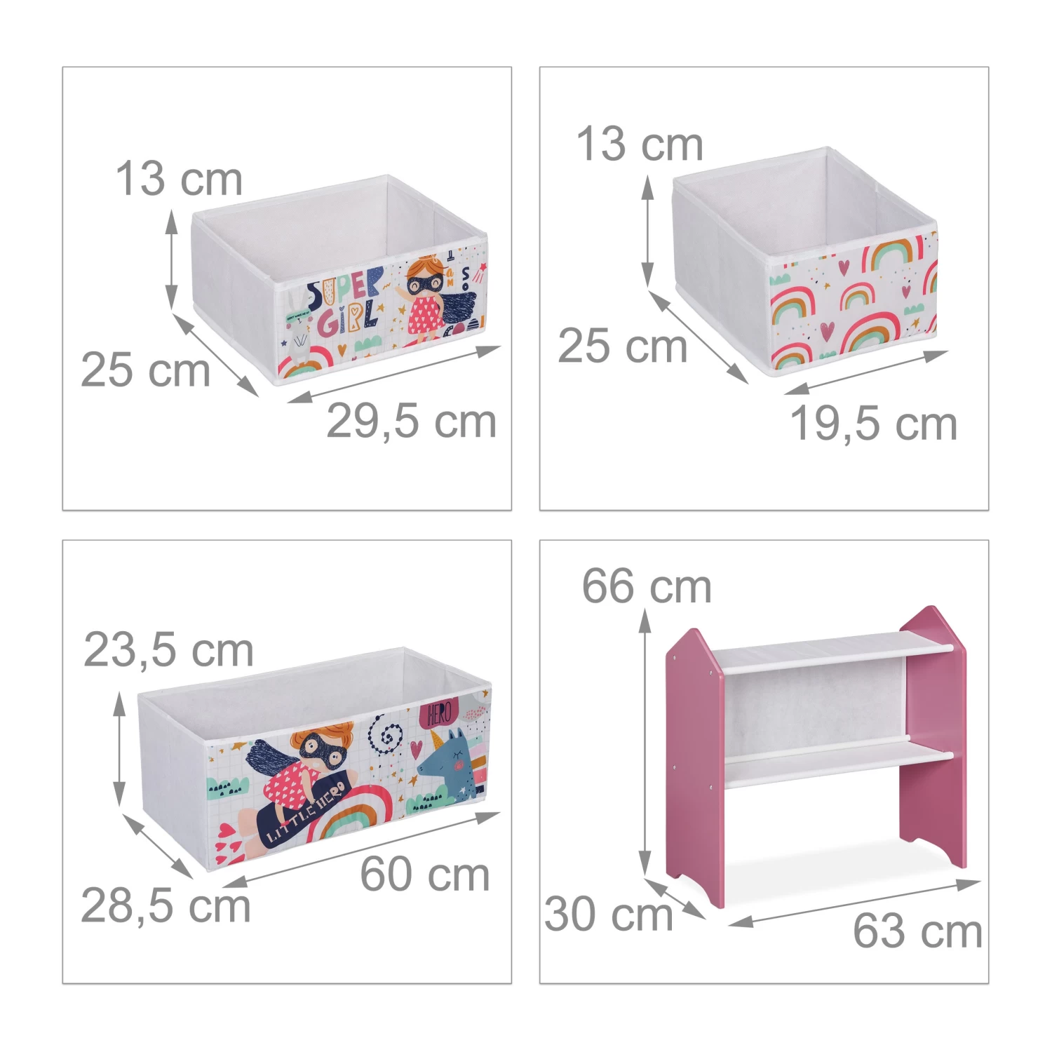 Das Spielregal eignet sich ideal zur Spielzeugaufbewahrung im Kinderzimmer. In 6 Boxen unterschiedlicher Größe steht ausreichend Platz zur Verfügung, um Kuscheltiere, Bücher, Bauklötze und mehr ordentlich zu verstauen. Dank der kindgerechten Höhe können bereits Kleinkinder das stabile Spielsachenregal selbstständig aus- und einräumen. Das coole Superheldin-Motiv wird Mädchen begeistern und macht das Spielzeugaufbewahrungsregal zu einem schönen Blickfang im Kinderzimmer.