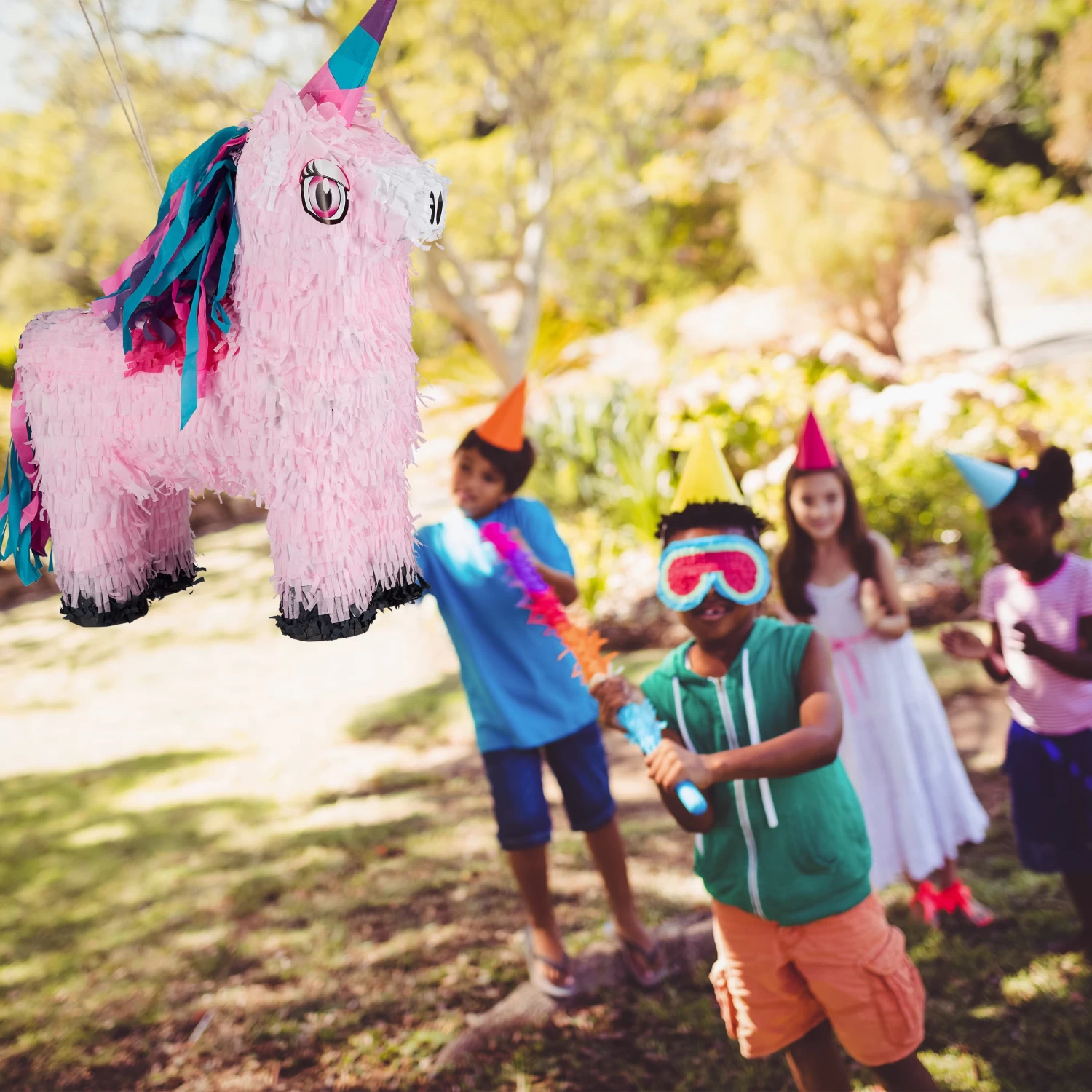 Das vor allem in Mexiko beliebte Partyspiel ist auch ideal für Einschulungen, Babypartys oder Junggesellinnenabschiede. Als lustige Partydeko sorgt das Einhorn für einen garantierten Blickfang.