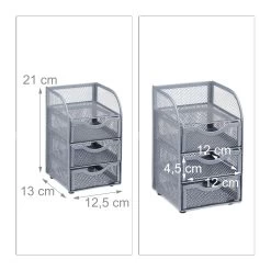 Der Schreibtischorganizer aus engmaschigem Metallgeflecht hilft Ihnen, Ordnung auf Ihrem Schreibtisch zu schaffen. Ob Karawanen aus Büroklammern, Notizzettel, die nur auf den nächsten Windzug warten, oder der gute alte Radiergummi: Dank der Schreibtischbox mit 3 Schubladen lassen sich diese und viele weitere Büromaterialien platzsparend und übersichtlich aufbewahren. Auf der Unterseite des Ordnungssystems finden sich 4 gummierte Standfüße, die verhindern, dass der Büroorganizer auf Ihrem Schreibtisch auf Wanderschaft geht.