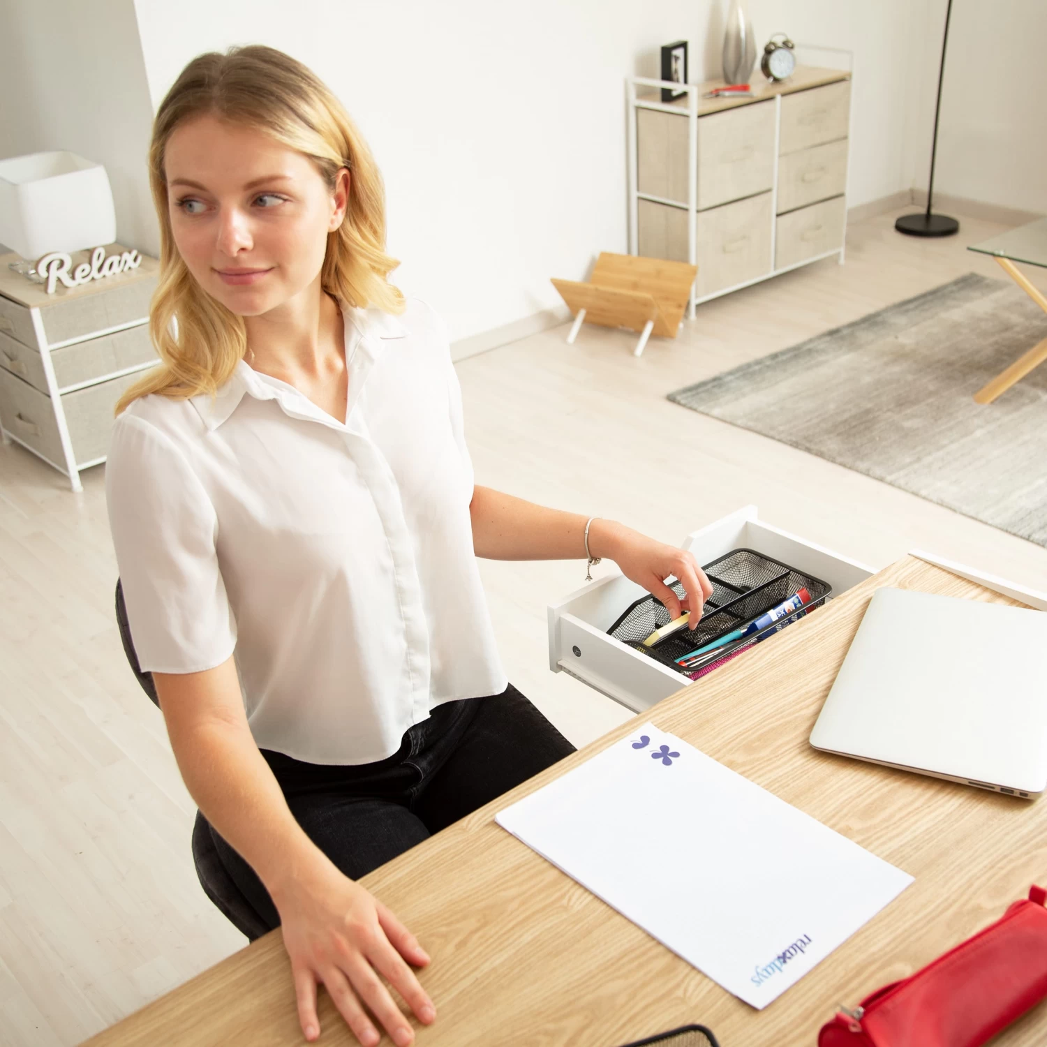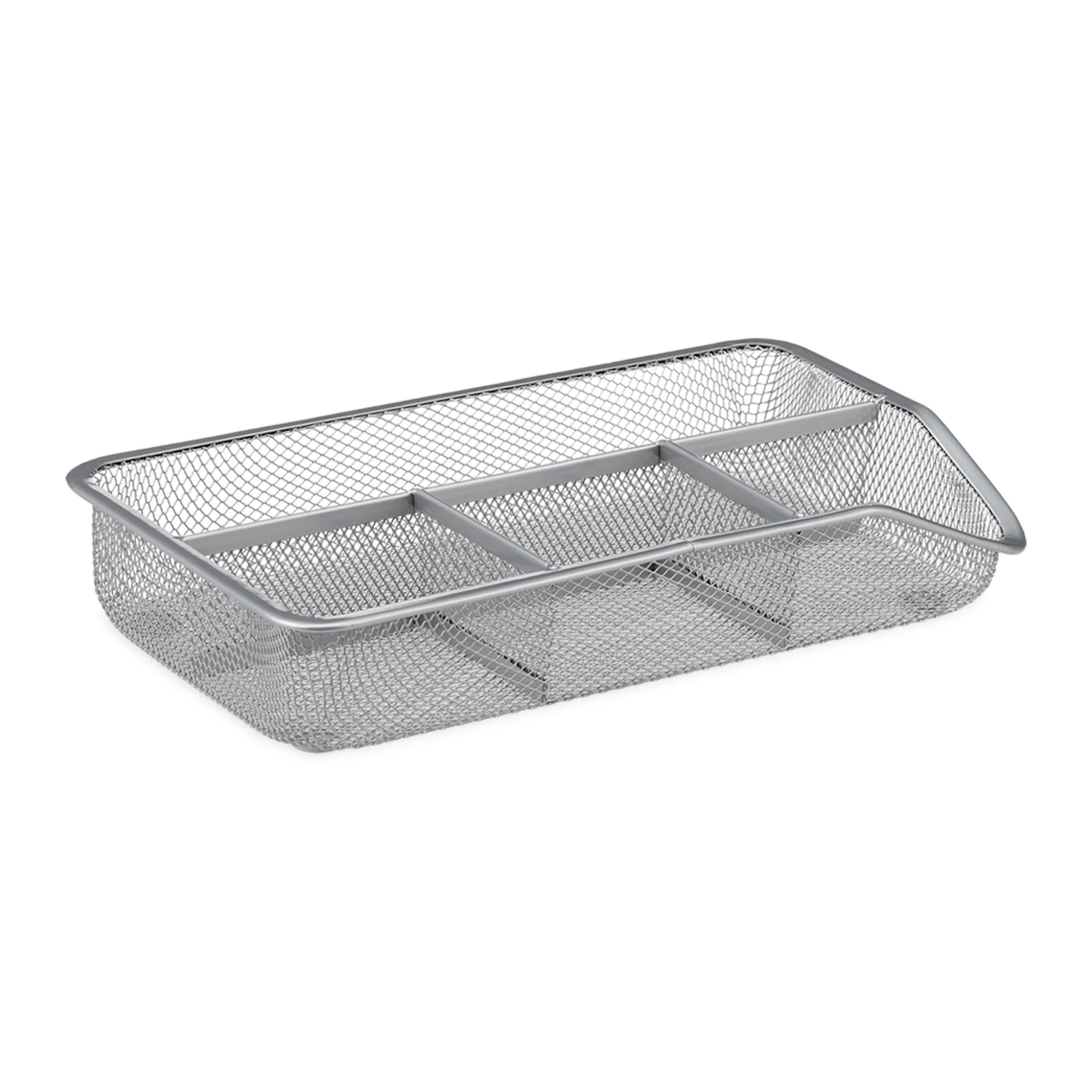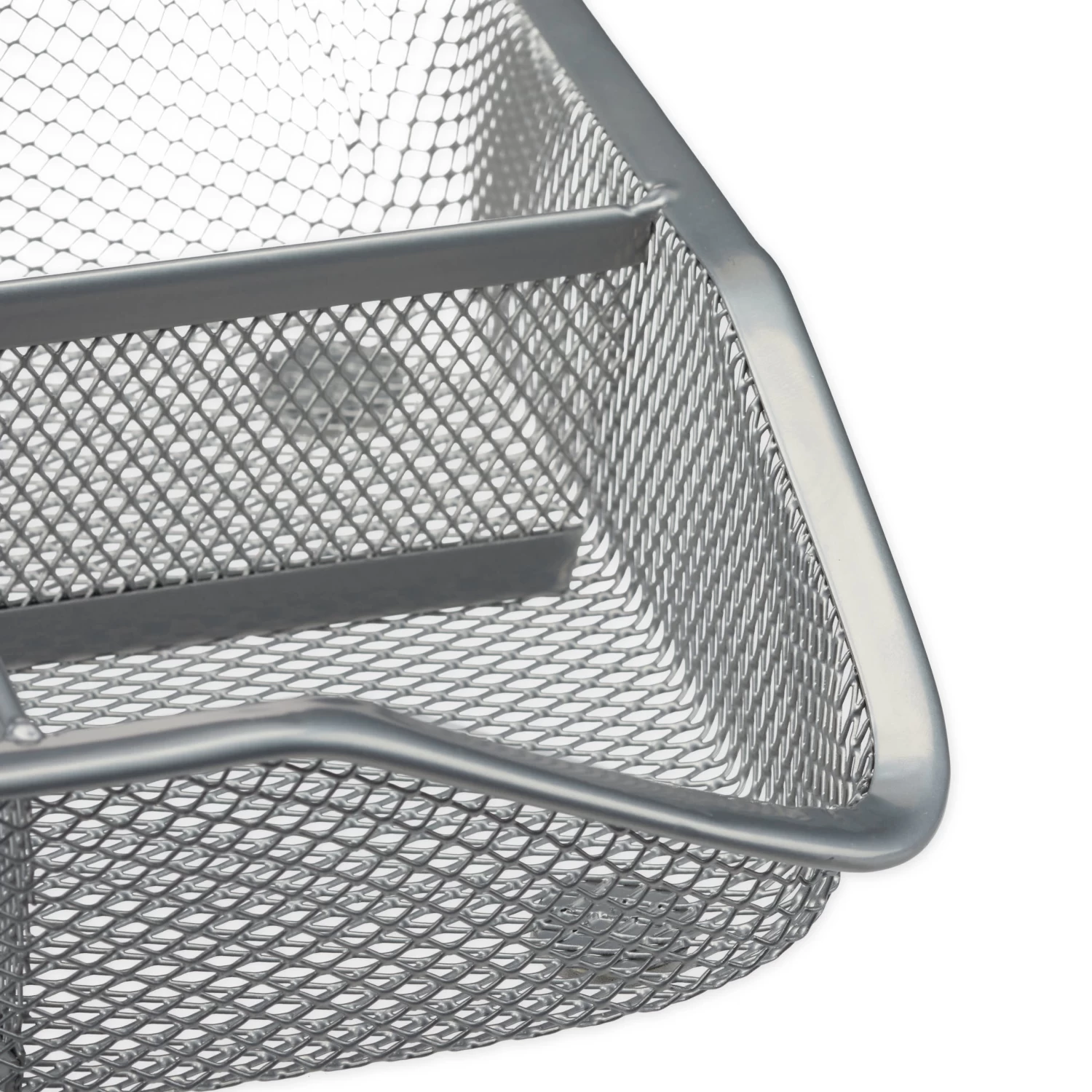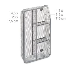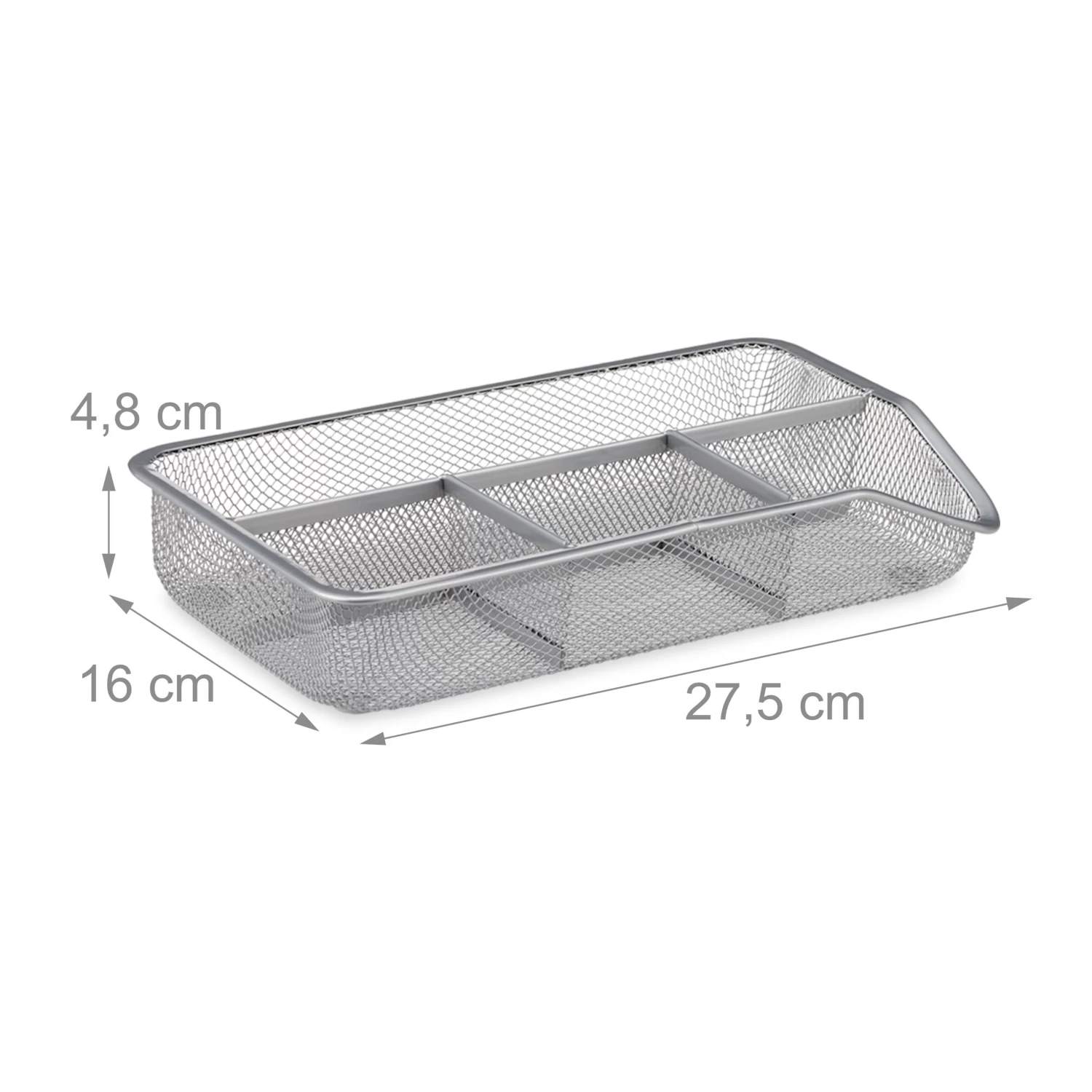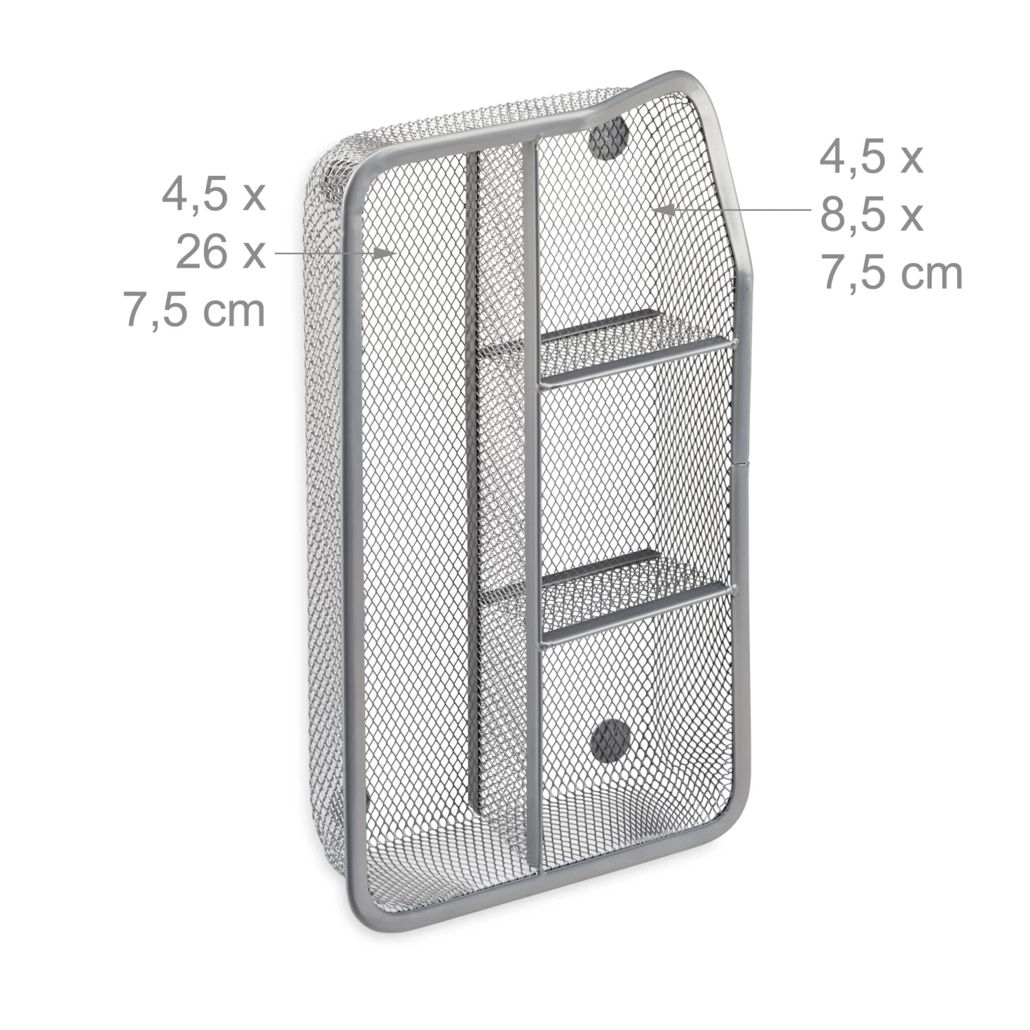 Mit diesem Schreibtisch Organizer treten Sie dem Chaos am Arbeitsplatz entgegen. Der Schreibtisch-Organizer hat 4 Ablagen in verschiedenen Größen in denen Stifte, Pinsel, Haftzettel, Büroklammern uvm. Platz finden. Dank der kompakten Maßen und der flachen Form macht sich der Organizer ideal als Schubladeneinlage. Eine abgerundete Ecke des äußeren Faches, ist ideal zum Herausnehmen von Haftzetteln und kleinen Notizzetteln. Der Tischorganizer ist vollständig aus Metall gefertigt. Das einheitliche und geradlinige Design macht den Schreibtischbutler zu einem echten Hingucker auf dem Tisch in Ihrem Büro oder auch im Kinder- oder Jugendzimmer.
