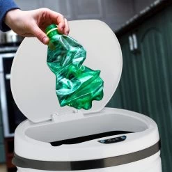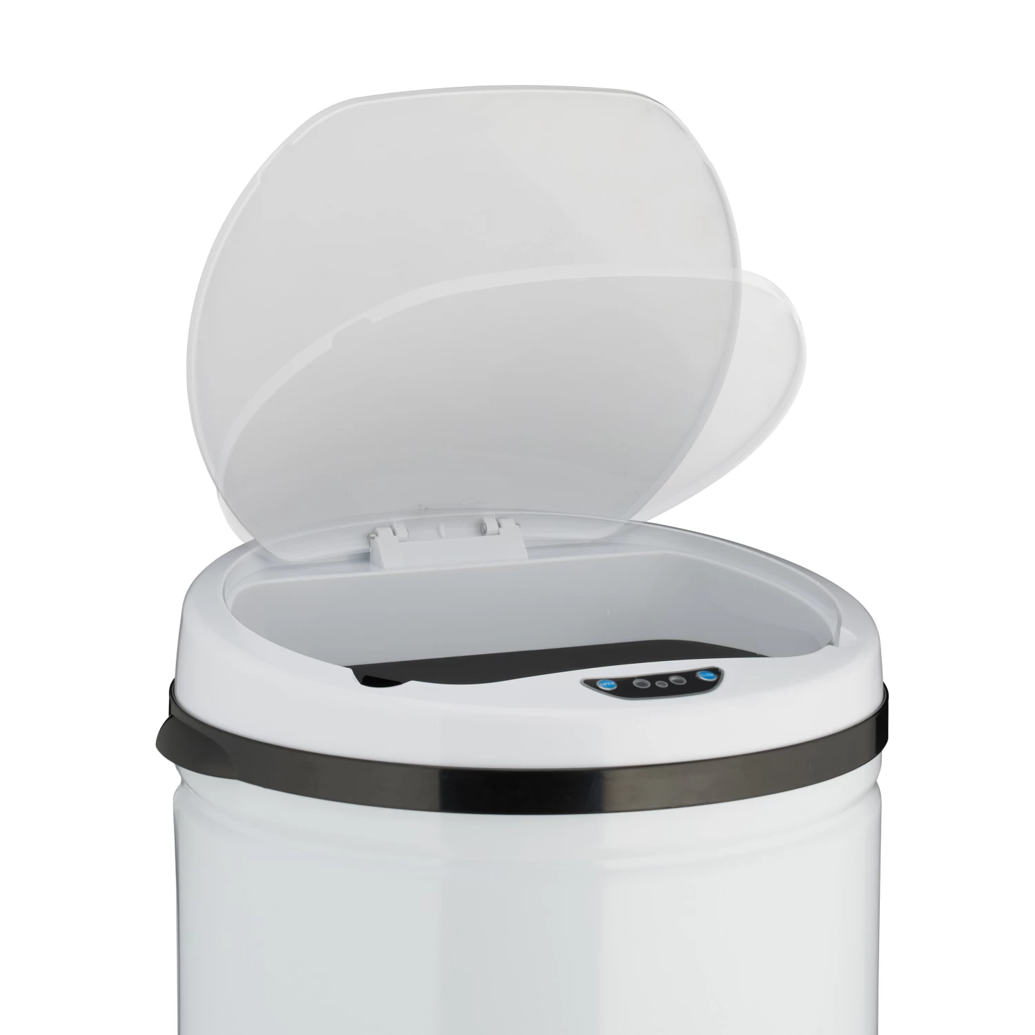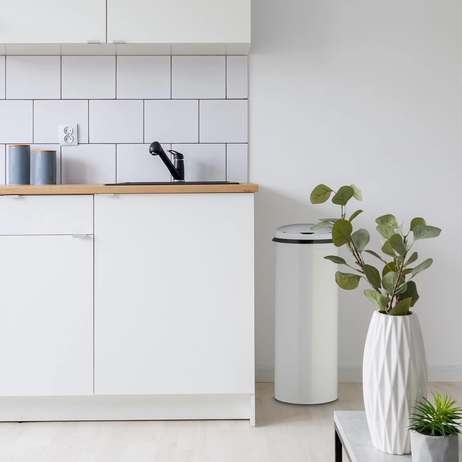 Der Mülleimer mit Sensor macht die Abfallaufbewahrung im Haushalt um einiges leichter. Der hochwertige Abfalleimer muss zum Öffnen nicht einmal berührt werden. Bewegen Sie Ihre Hand über den Sensor und schon hebt sich der Deckel nach oben. Nach 3 Sekunden schließt er automatisch und bewahrt Ihren Abfall geruchsdicht auf. Eine manuelle Bedienung per Knopfdruck ist bei Bedarf auch möglich. Das moderne Design des weißen Automatik Mülleimers aus Edelstahl fügt sich wunderbar in Küche oder Büro.