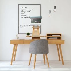 Mit diesem praktischen Pultaufsatz aus Bambus verwandelst Du Deinen normalen Schreibtisch im Handumdrehen in einen Steharbeitsplatz. Das sorgt für eine gesunde Abwechslung im Büro und beugt Rückenschmerzen und Nackenbeschwerden vor. Der Standschreibtisch-Aufsatz wird einfach zusammengesteckt, sodass die Montage ohne Werkzeug jederzeit schnell gelingt. Die Höhe und den Abstand der 2 Ablagen kannst Du frei wählen, sodass Du das Stehpult individuell an Deine Körpergröße anpassen kannst.