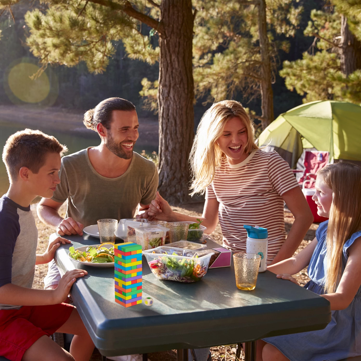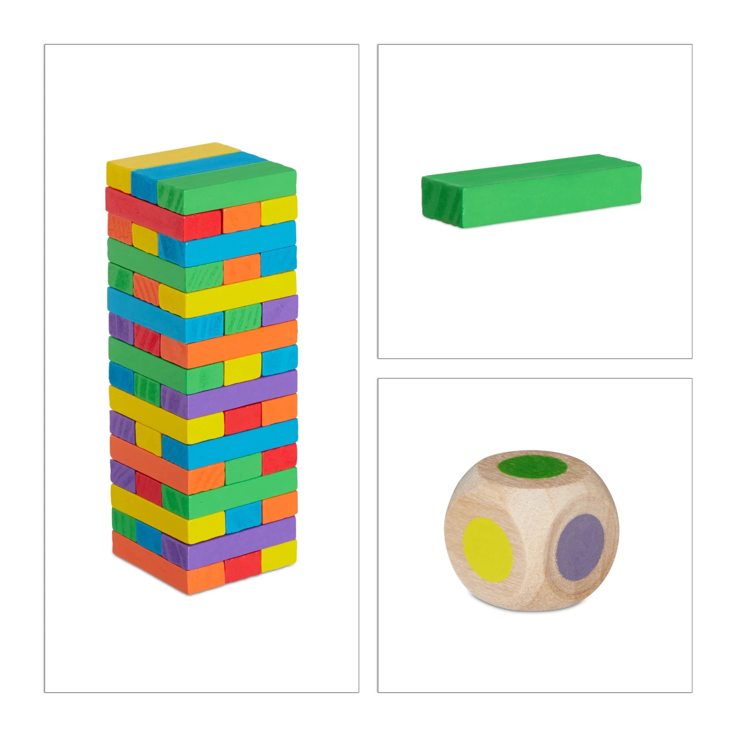 Der Wackelturm aus Bausteinen in 6 verschiedenen Farben ist das ideale Holzspielzeug, um die Geschicklichkeit Ihres kleinen Schatzes zu schulen. Welche Farbe der Spielstein hat, der als nächstes gezogen werden muss, entscheidet der Würfel. Der Stapelturm ist eine tolle Spielidee für die ganze Familie oder den stimmungsvollen Partyabend. Mit jedem Zug wird der Turm wackeliger, bis es kein Zurück mehr gibt und er einstürzt. Kein Problem, denn mithilfe der Verpackung ist der Tumbling Tower schnell wieder aufgebaut.